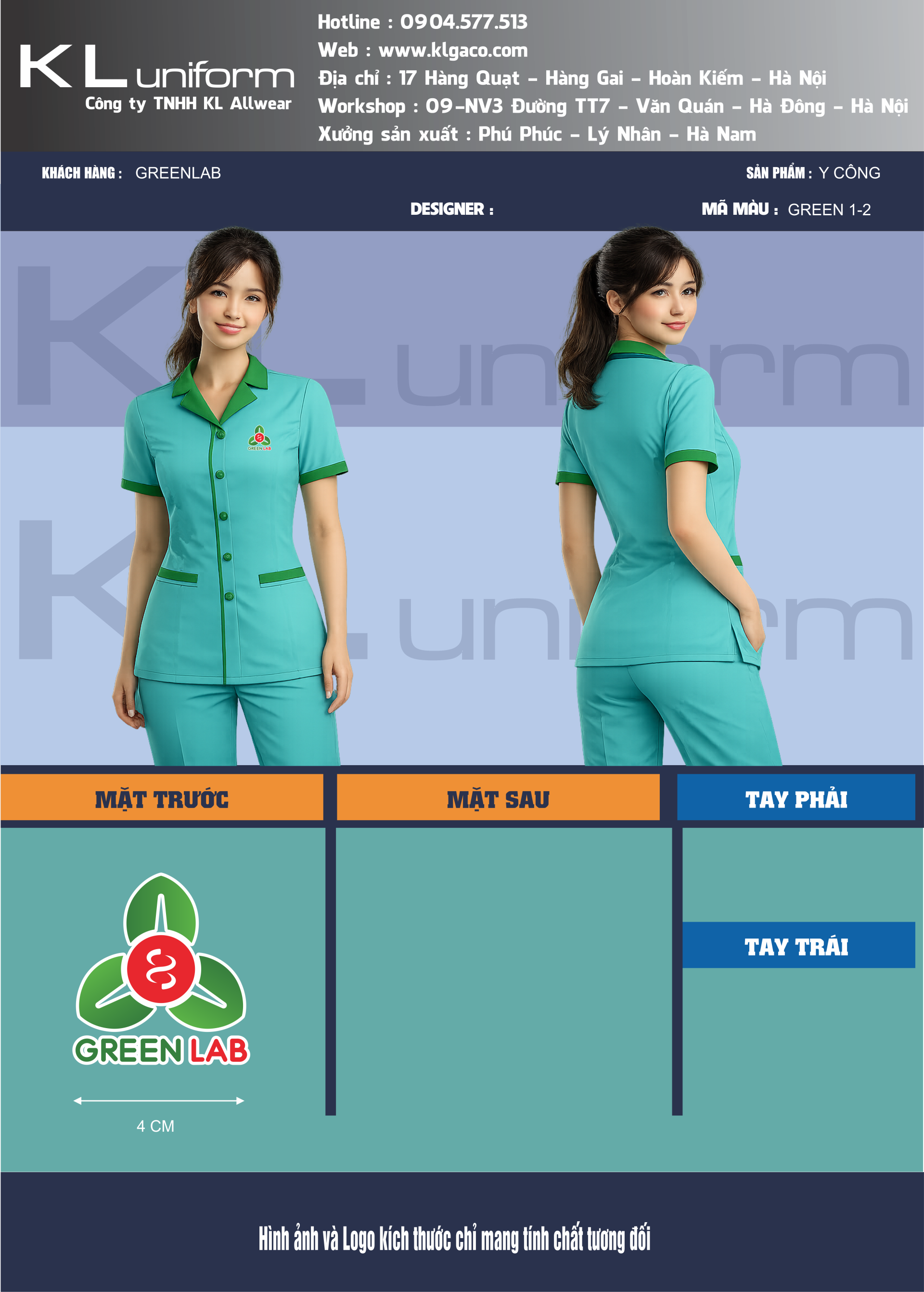 Trong môi trường phòng xét nghiệm, đồng phục không chỉ là trang phục làm việc mà còn là yếu tố thể hiện sự chuẩn mực, uy tín và tính chuyên môn cao. Mẫu đồng phục Y Công GreenLab được thiết kế tối ưu dành riêng cho đội ngũ kỹ thuật viên và nhân viên phòng xét nghiệm.